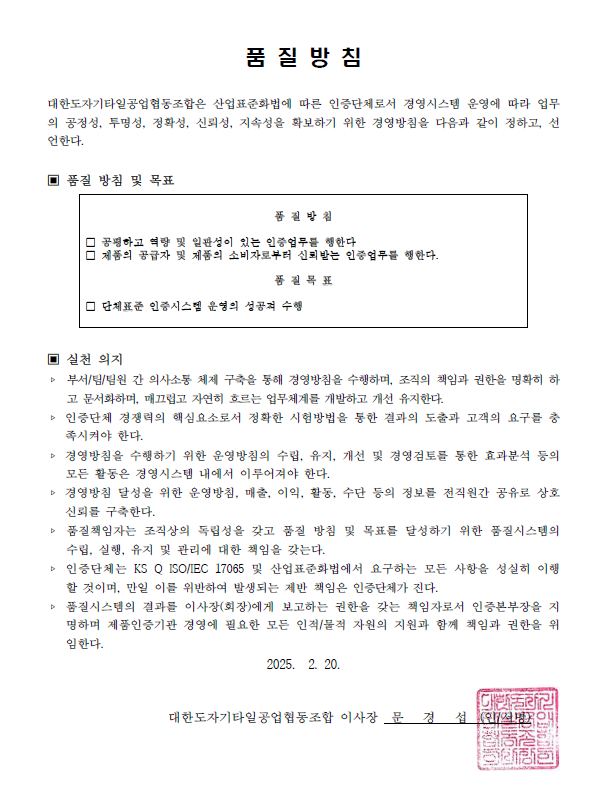 ´ÜüǥÁØ ÀÎÁõ´Üü °æ¿µ½Ã½ºÅÛ ¿î¿µ¿¡ µû¸¥ ǰÁú¹æÄ§