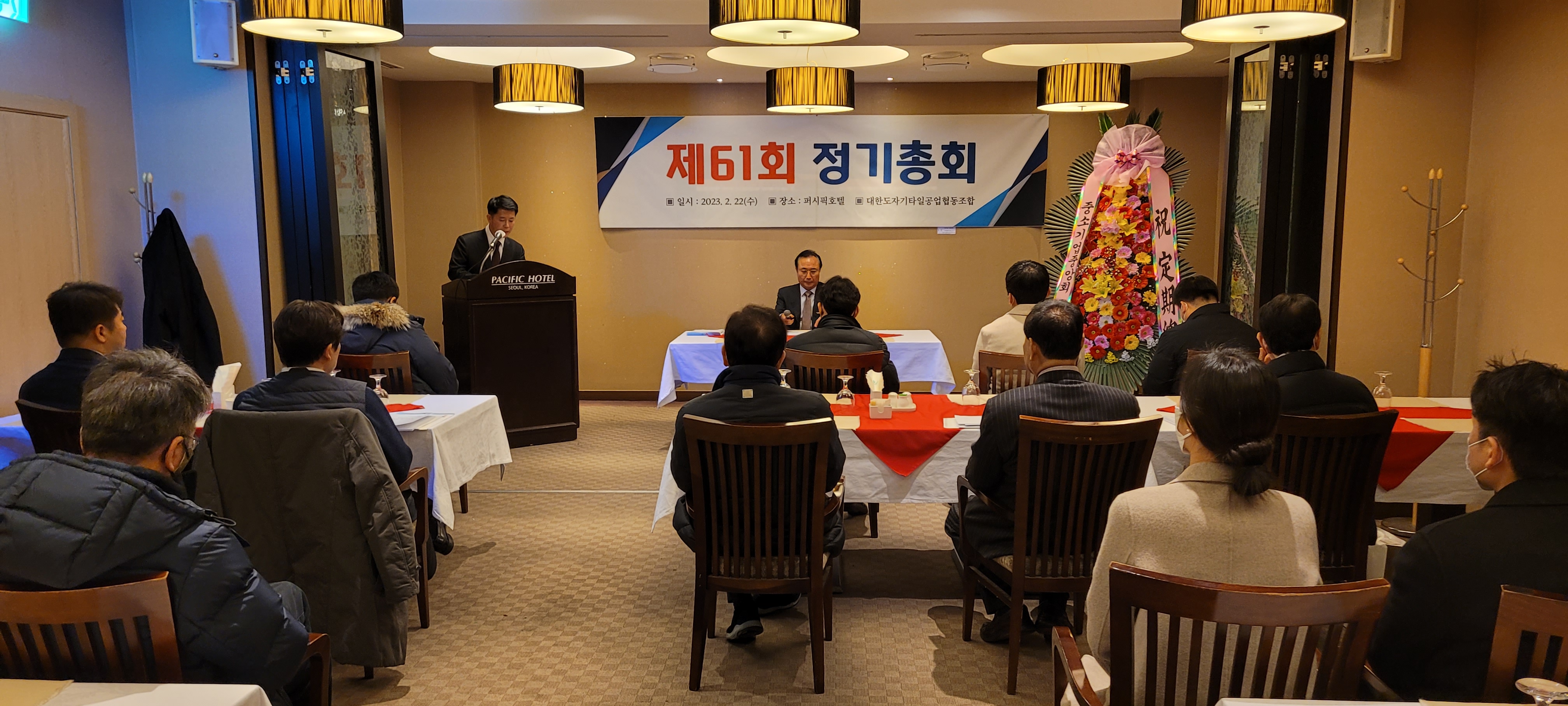 Áö³ 2¿ù 22ÀÏ ´ëÇѵµÀÚ±âŸÀϰø¾÷Çùµ¿Á¶ÇÕÀº ¼¿ï ÆÛ½ÃÇÈÈ£ÅÚ¿¡¼ Á¦61ȸ Á¤±âÃÑȸ¸¦ °³ÃÖÇß´Ù. À̳¯ Á¤±âÃÑȸ¿¡¼± 2022³âµµ »ç¾÷º¸°í, °á»ê ½ÂÀÎ ¹× °á¼Õ±Ý ó¸®(¾È) ÀǰáÀÇ °Ç, ÀÌ»çȸ À§ÀÓ¿¡ °üÇÑ °Ç, ÀÓ¿ø ¼±ÃâÀÇ °ÇÀÌ ÁøÇàµÆ´Ù.